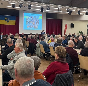 Ortsbrandmeister Ralf Hufenbach begrüßte am 6. Februar 2026 174 Anwesende im Bürgerhaus zur Jahreshauptversammlung. Darunter viele Gäste, Mitglieder der Einsatz, Jugend, und Altersabteilung sowie viele Fördernde Mitglieder. Er freute sich über eine sehr starke Beteiligung. Besonders begrüßen konnte er an diesem Abend die Bürgermeisterin Katharina Ebeling, den Gemeindebrandmeister Henning Sander, den Leiter der Werkfeuerwehr Rheinmetall Thomas Schlicht sowie den Feuerschutzausschussvorsitzenden Klaus Bunke.